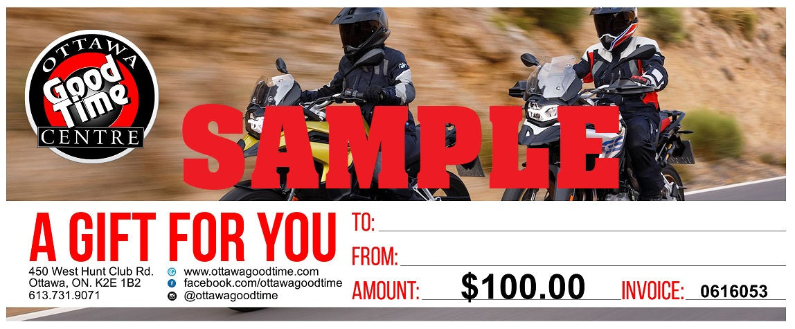 Looking for the perfect gift for a motorcycle enthusiast? Our Online Shop Gift Certificate is the ideal choice! It’s flexible, easy to use, and valid for any online purchase at Ottawa Goodtime Centre’s online store. From motorcycle gear and accessories to parts and apparel, this gift card ensures your loved one gets exactly what they need.